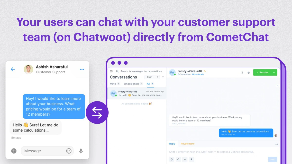 - When an agent replies to the queries, those will be sent over to CometChat and received by your end user.