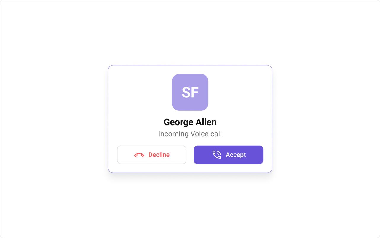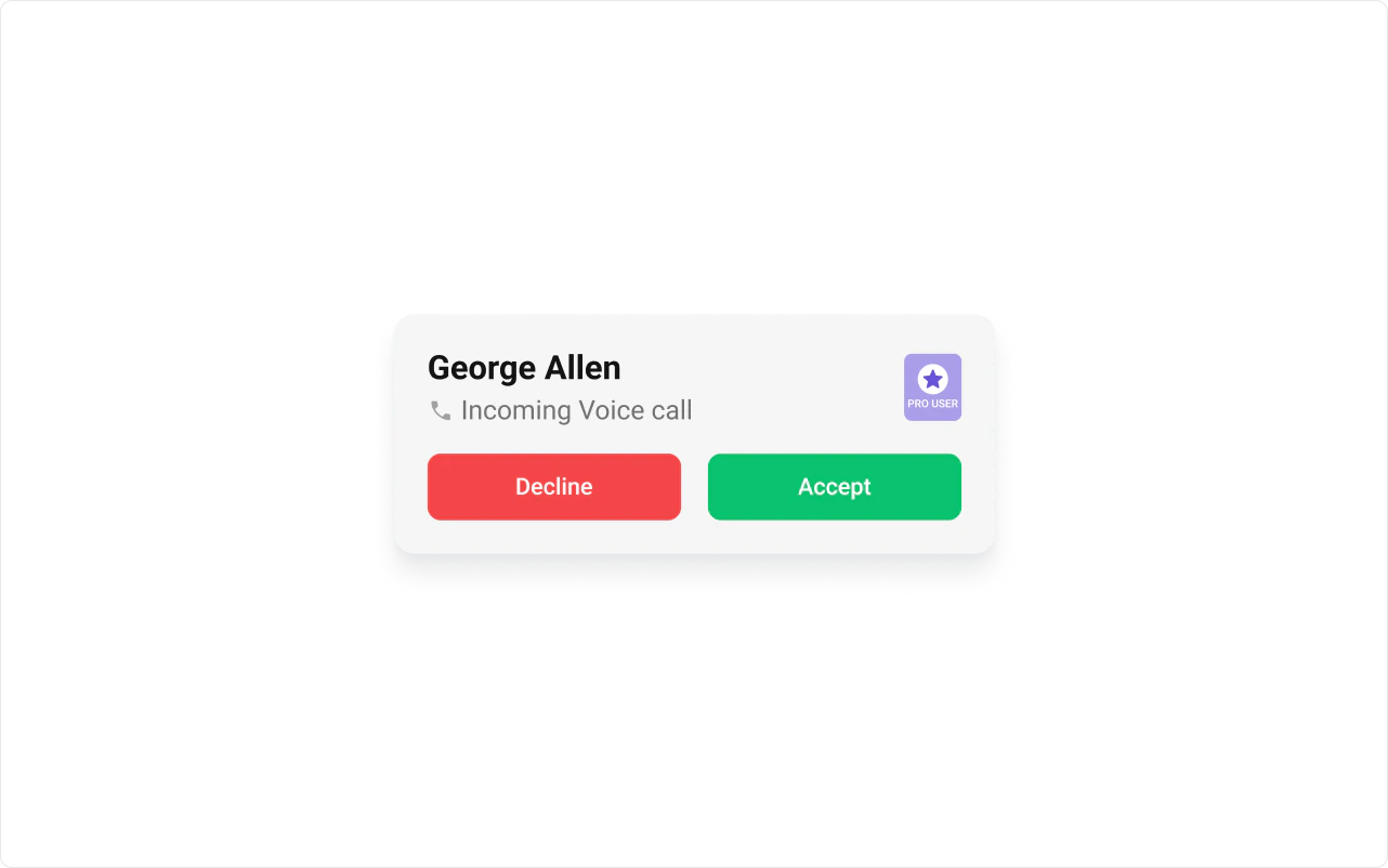 To fit your app’s design requirements, you can customize the appearance of the Incoming Call component. We provide exposed methods that allow you to modify the experience and behavior according to your specific needs.Style